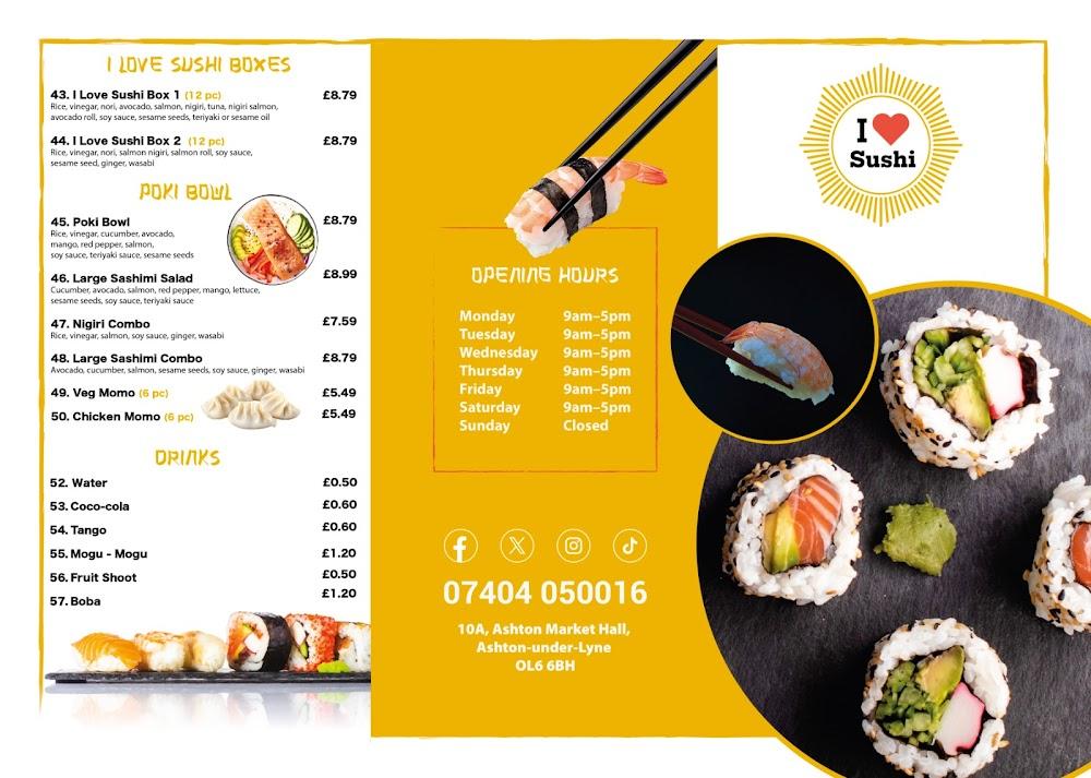 Located in the bustling Ashton Market Hall, I Love Sushi World LTD is strategically positioned for market-goers and sushi enthusiasts alike. This location offers a vibrant community atmosphere, making it a perfect spot for a quick lunch or a relaxing dinner. The market ambiance enhances the experience, providing an inviting backdrop filled with local charm and friendly faces. The owners bring a wealth of knowledge and passion to every dish, ensuring that each piece not only meets but exceeds customers’ expectations. Access is easy with multiple service options, from kerbside pickups to delivery, catering to busy lifestyles without compromising on quality. The welcoming environment feels casual yet attentive, creating a sense of belonging while diners enjoy their delicious sushi.
